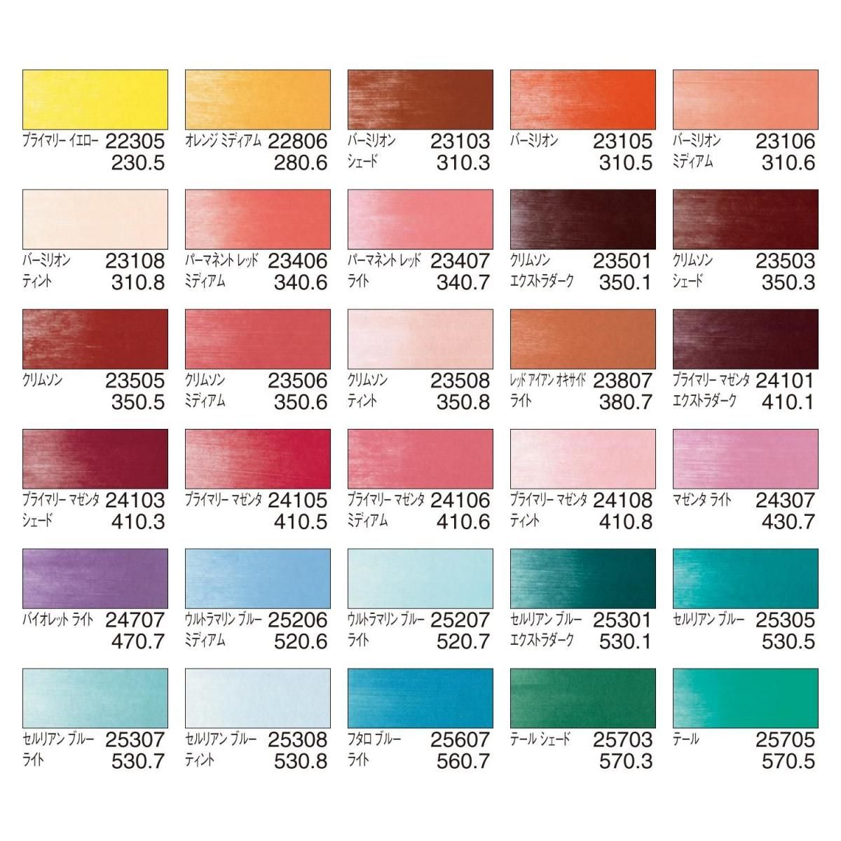 2025 年に発売された53色の新色を取りそろえた、80 色セットの完璧な拡張パックです。 すべての色を中間色に混ぜることができます。 <仕様> 単色のサイズ直径φ62mm×高さ17mm(×53色) 内容量9ml(×53色) <内容品> プライマリー イエロー オレンジ ミディアム バーミリオン シェード バーミリオン バーミリオン ミディアム バーミリオン ティント パーマネント レッド ミディアム パーマネント レッド ライト クリムソン エクストラダーク クリムソン シェード クリムソン クリムソン ミディアム クリムソン ティント プライマリー マゼンタ エクストラダーク プライマリー マゼンタ シェード プライマリー マゼンタ プライマリー マゼンタ ミディアム プライマリー マゼンタ ティント マゼンタ ライト バイオレット ライト ウルトラマリン ブルー ミディアム ウルトラマリン ブルー ライト セルリアン ブルー エクストラダーク セルリアン ブルー セルリアン ブルー ライト セルリアン ブルー ティント フタロブルー ライト テール シェード テール ターコイズ ライト フタロ グリーン ライト パーマネント グリーン ライト クローム オキサイド グリーン ライト ブルー グリーン シェード ブルー グリーン ブルー グリーン ライト ブルー グリーン ティント イエロー グリーン シェード イエロー グリーン イエロー グリーン ライト イエロー グリーン ティント ロー シェンナ エクストラダーク ロー シェンナ シェード ロー シェンナ ロー シェンナ ライト ロー シェンナ ティント レッド アイアン オキサイド ライト バーント シェンナ ライト バーント アンバー シェード バーント アンバー バーント アンバー ミディアム バーント アンバー ティント ロー アンバー ライト パレットトレイ20色用×3 Sofft®ナイフ×1 Sofft®カバー×5 Sofft®アートスポンジ×6